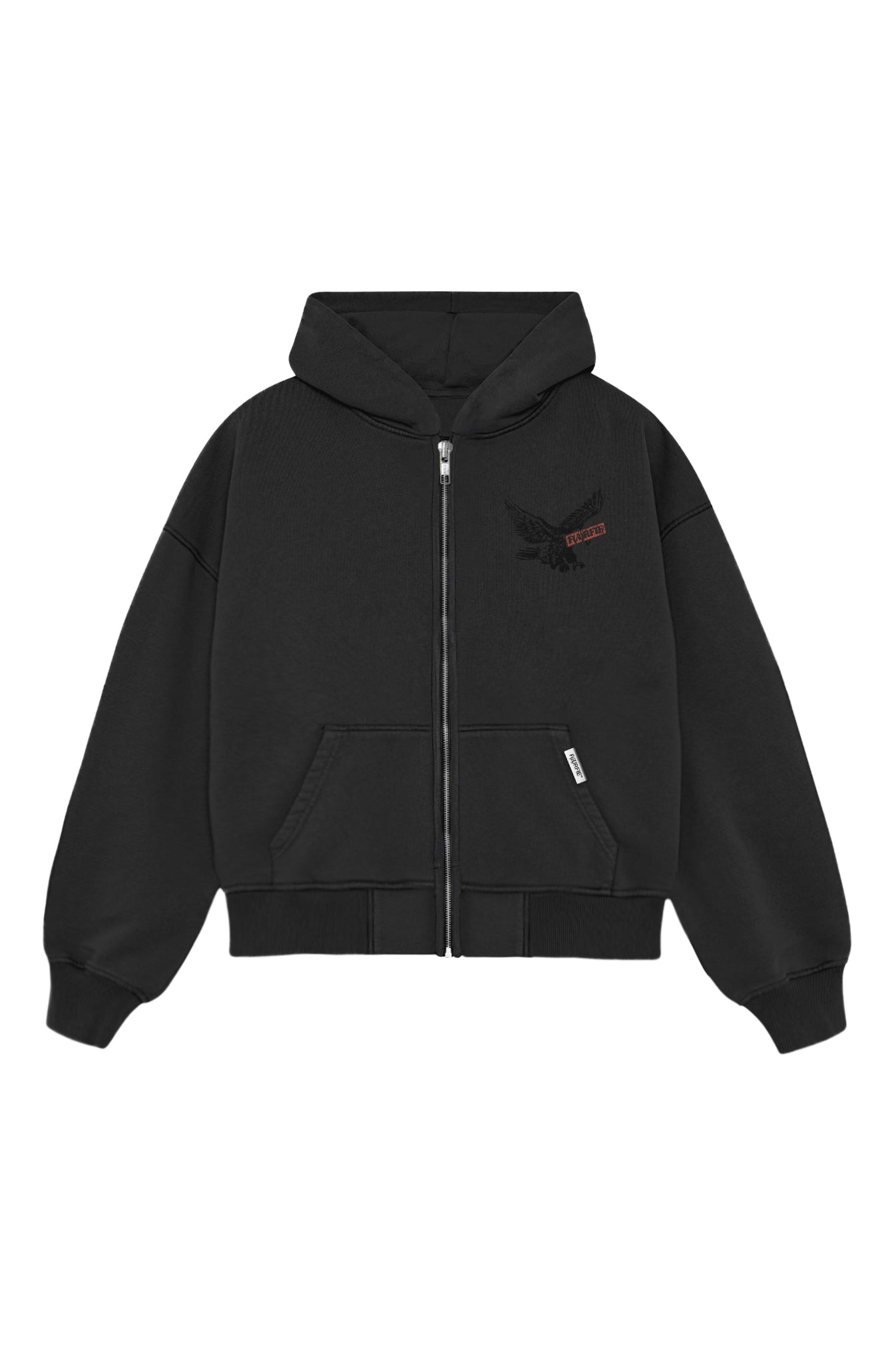 Зіп Худі вільного крою, виготовлене із бавовняної флісової тканини 320GSM. З об'ємним капюшоном, з кишенею спереду, принтом на грудях та спині.