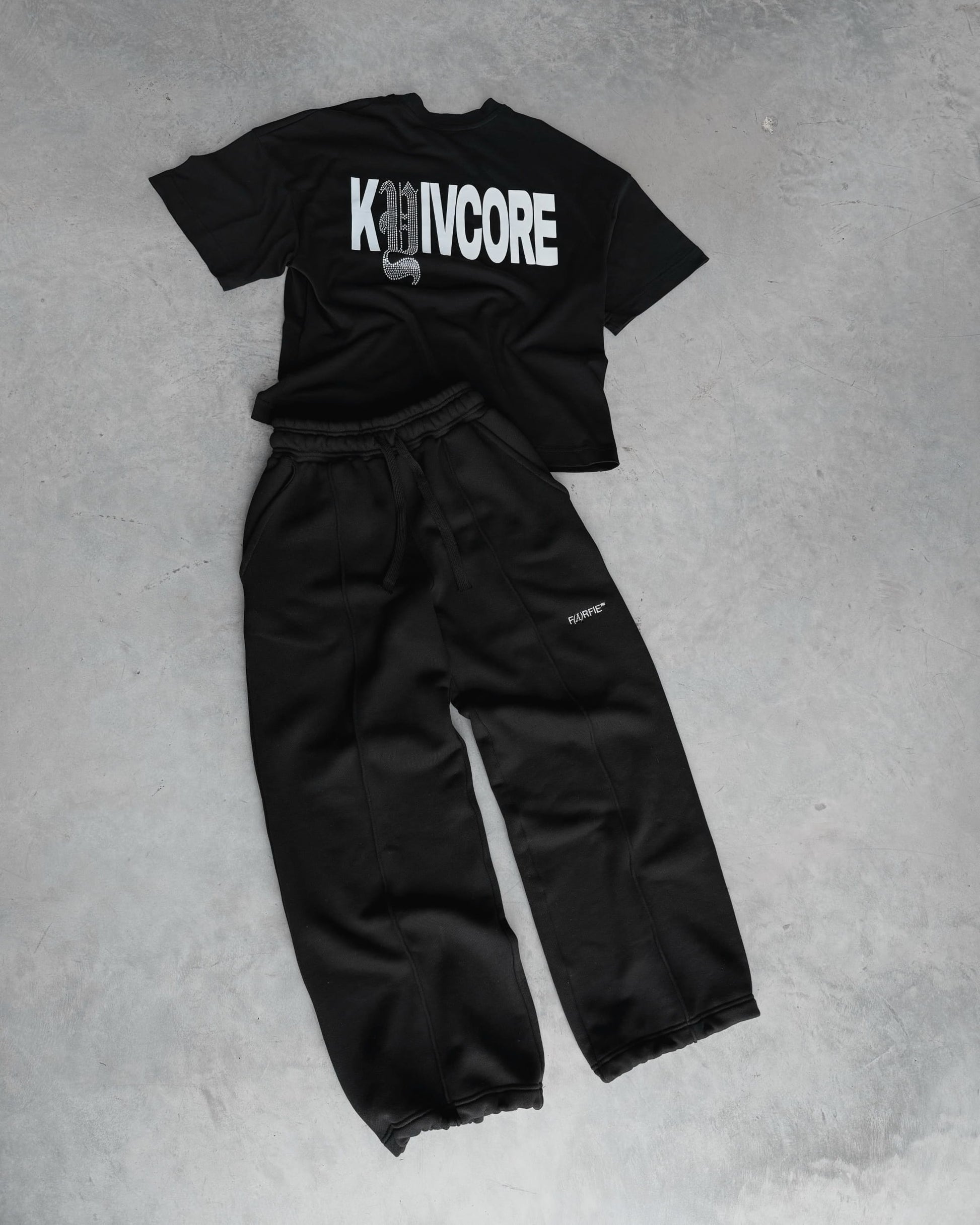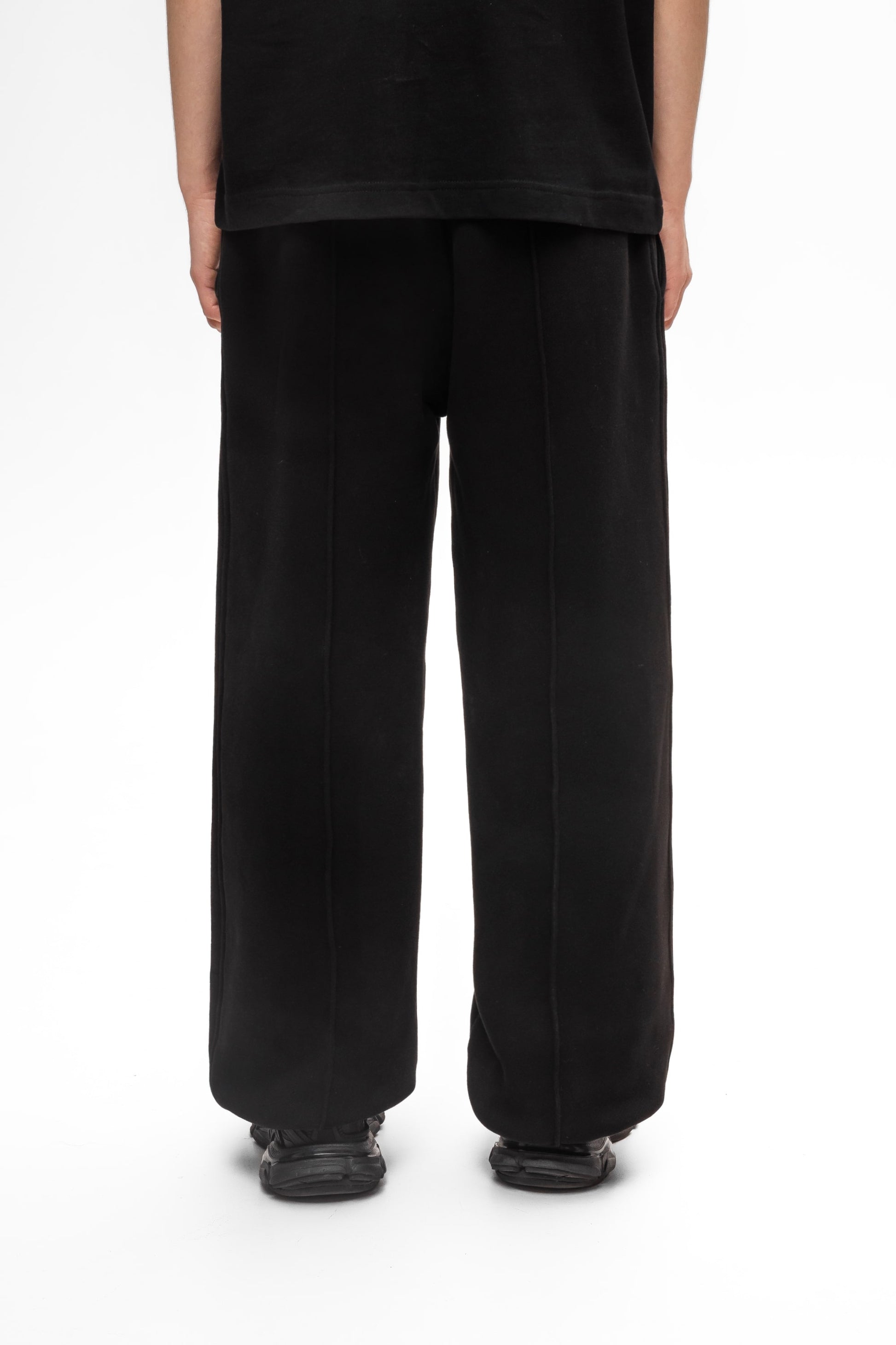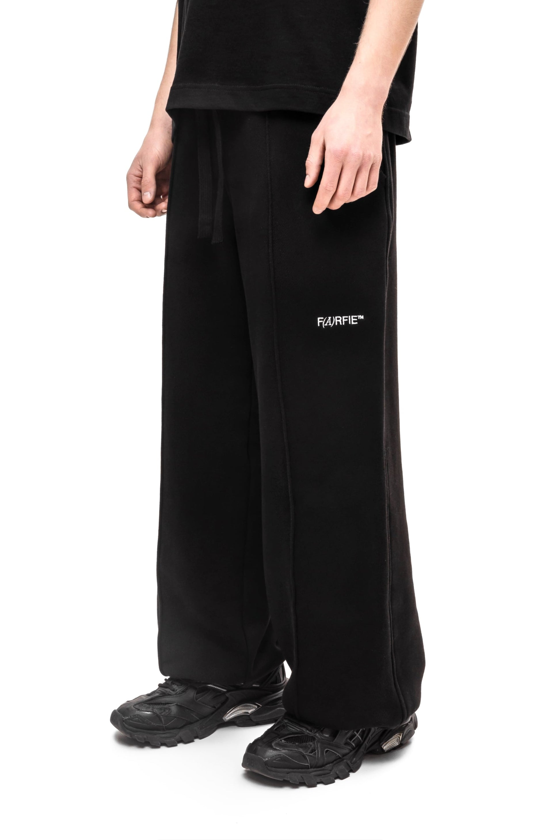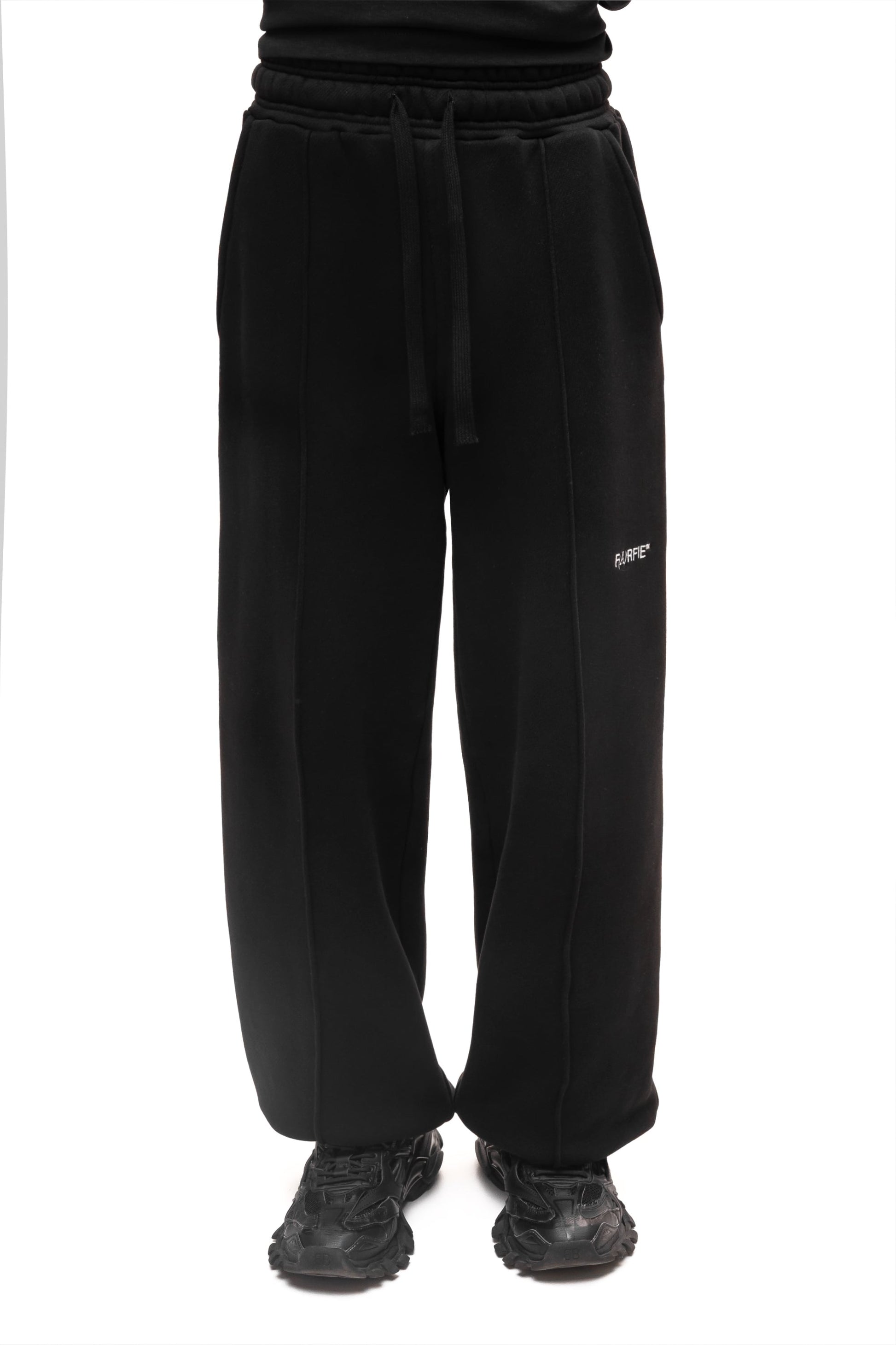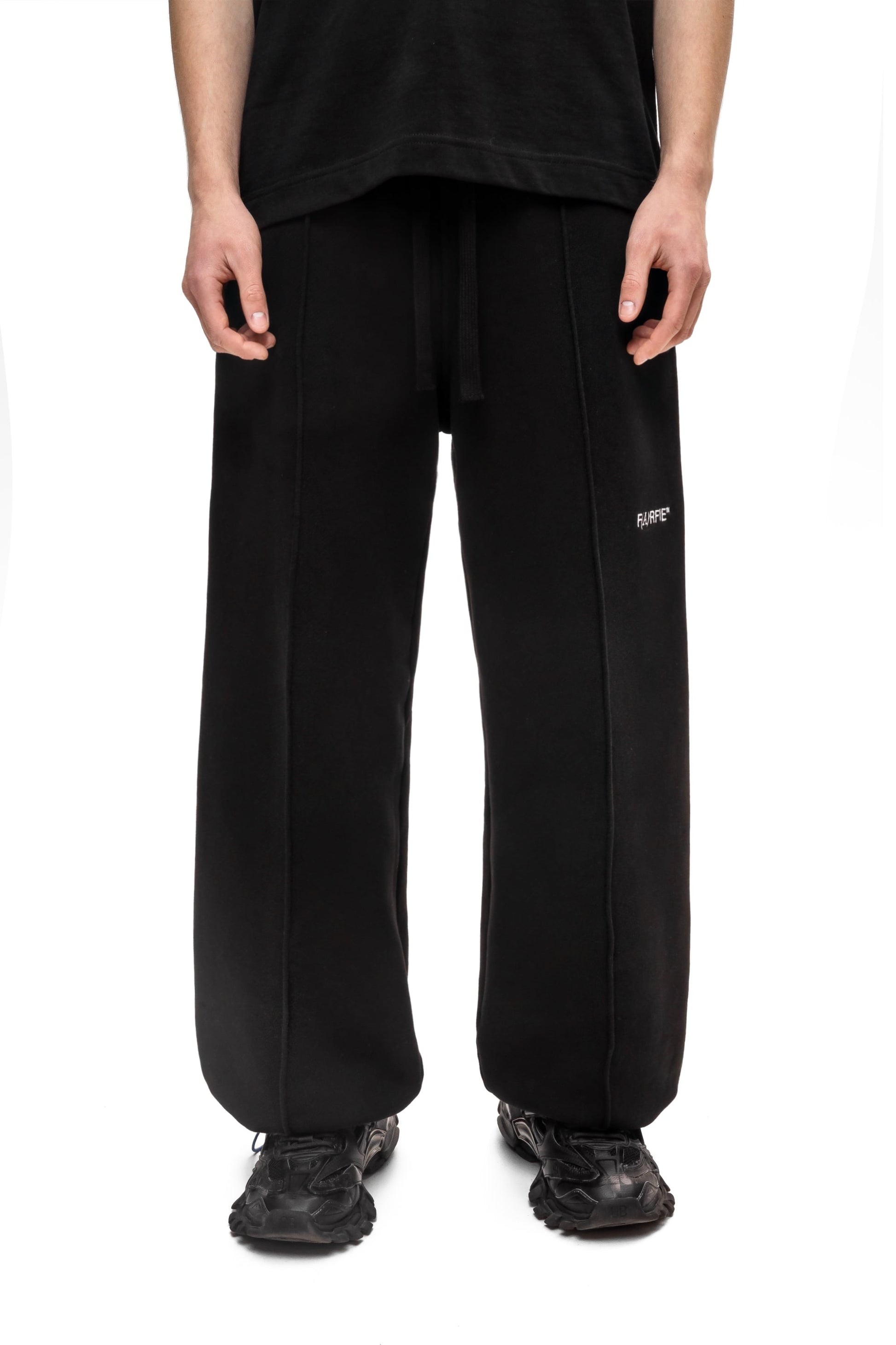 Штани вільного крою, виготовлені з бавовняної тканини 500GSM. Ширина знизу регулюється куліскою.