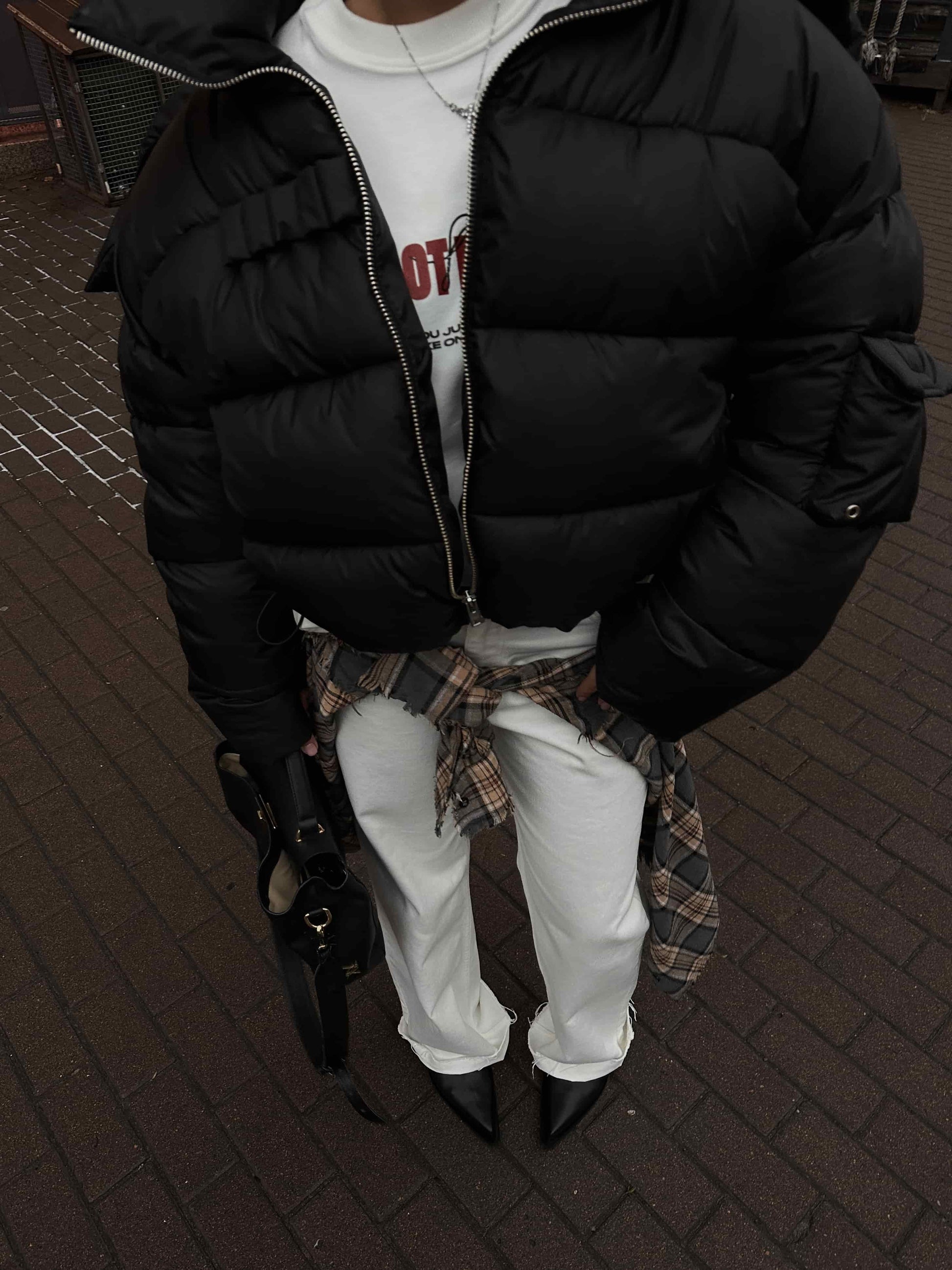 Пуховик оверсайз, який не сковує рухи, та зігріває до -25 градусів. Має дві бокові кишені та одну таємну внутрішню кишеню. Об'ємний капюшон від'єднується блискавкою.