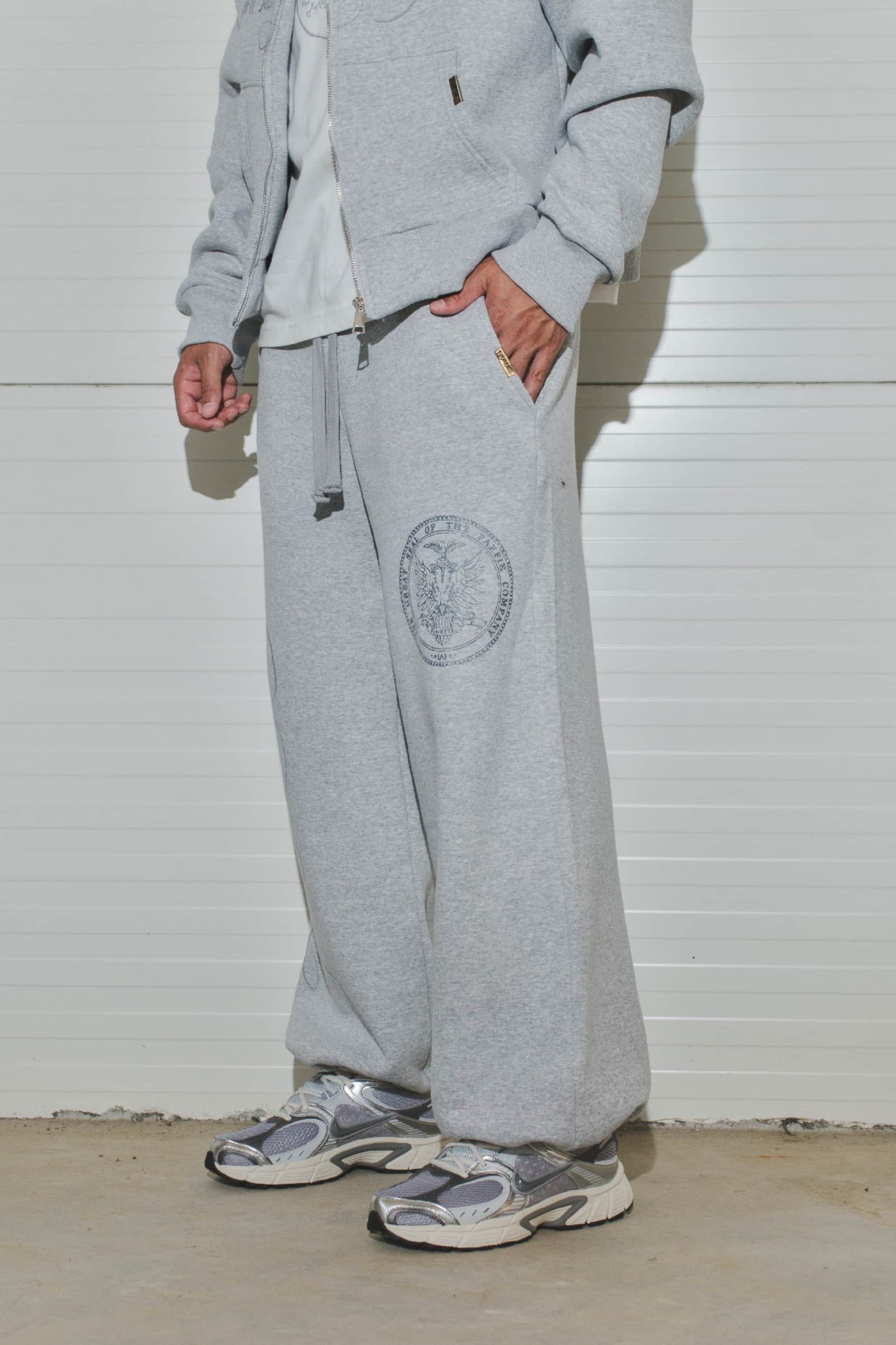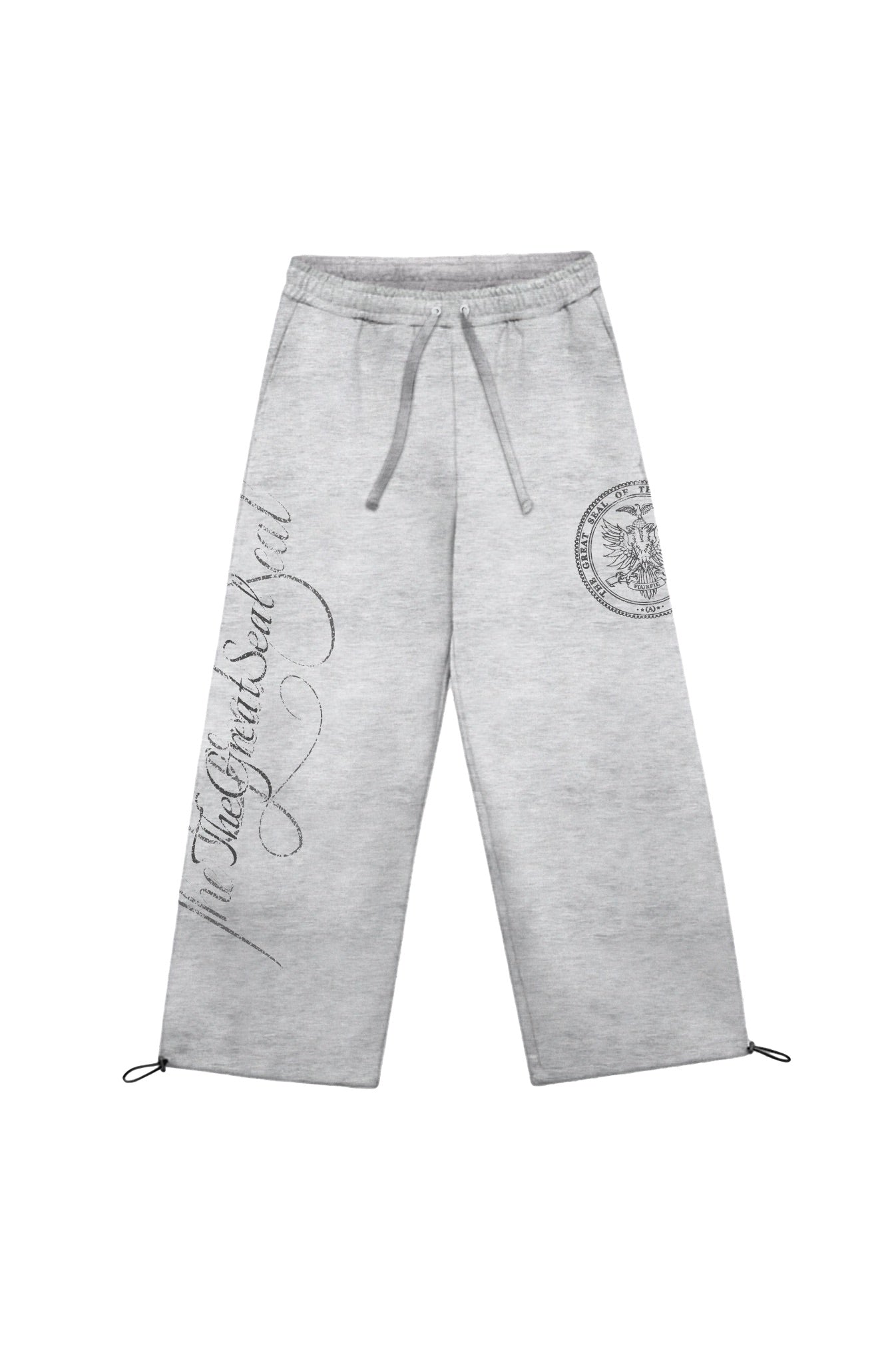 Штаны свободного кроя, изготовленные из хлопчатобумажной ткани 500GSM. Ширина снизу регулируется кулиской.